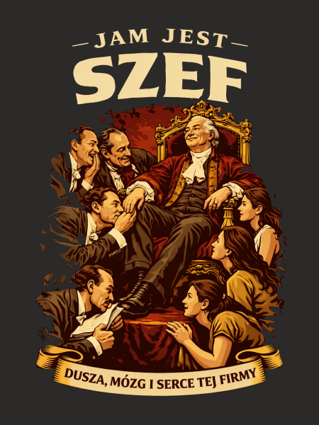 Koszulka dla szefa JAM JEST SZEF. DUSZA, SERCE I MÓZG TEJ FIRMY